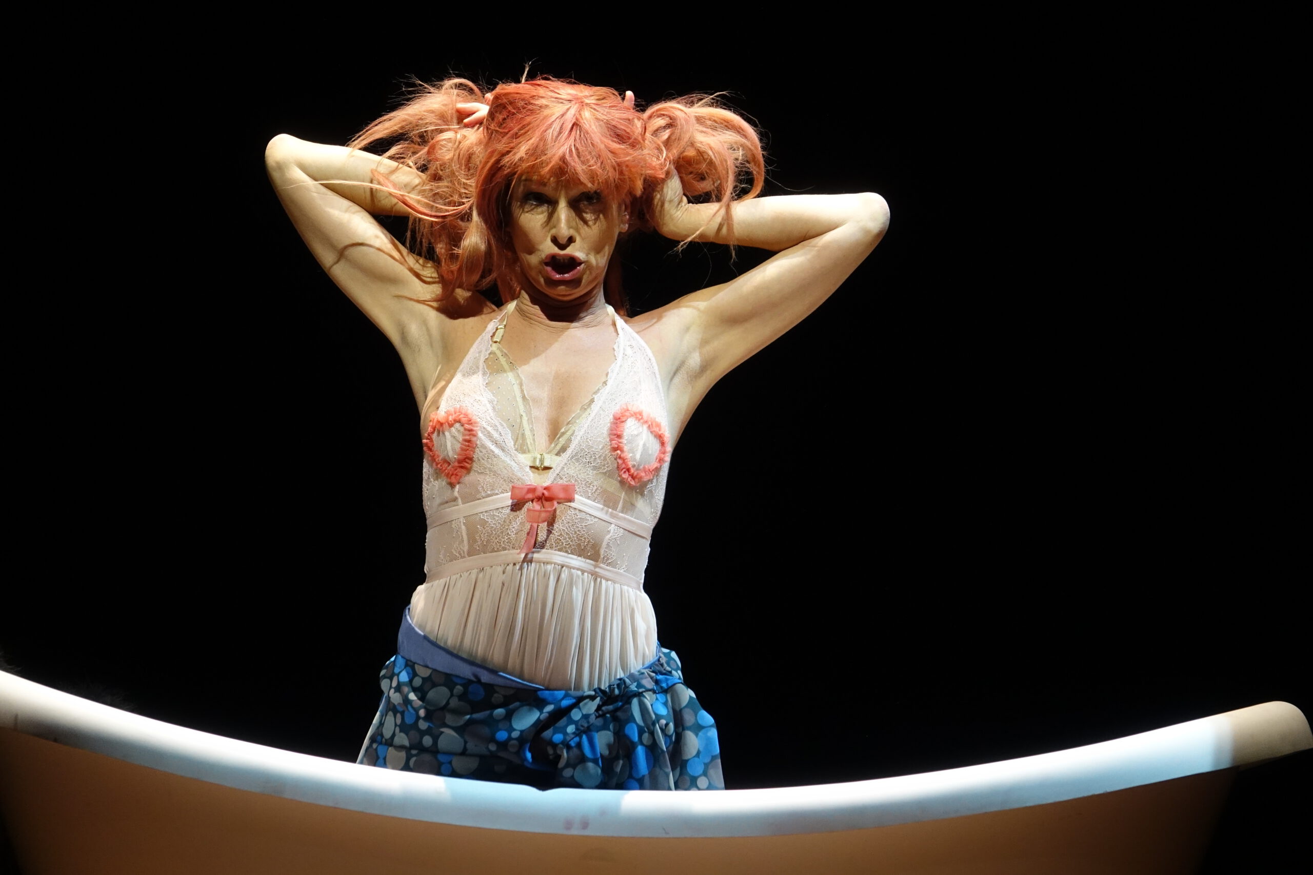 “Nicola Beller Carbone si immedesima nella giovane Anna …. Tutto lo spettacolo fa leva sulle doti vocali e sulla recitazione brillante del soprano che canta, sospesa fra opera e cabaret, balla elegante e marcia statuaria fra un cambio di costume e un altro. Una performance esuberante che ci guida in questa breve saga di perdizione.”